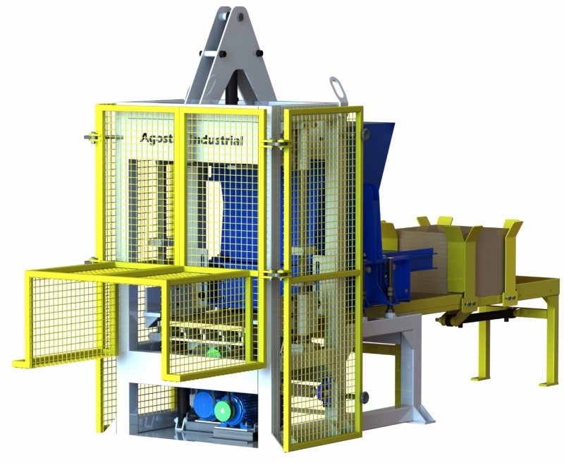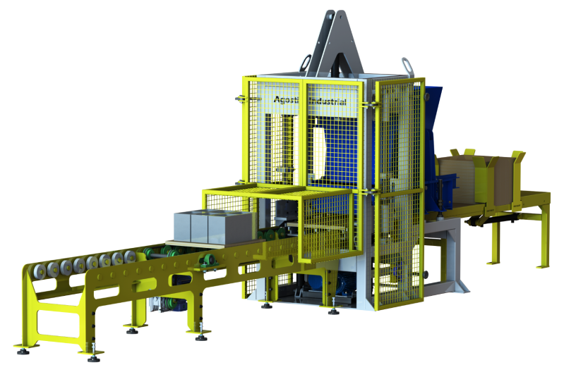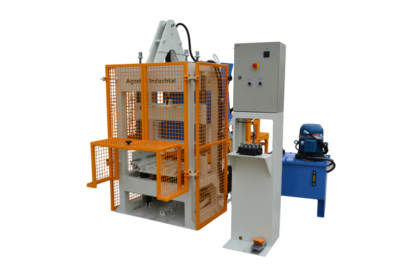 A Máquina de Blocos e Pavers Modelo MBH-300 da Agostini Industrial produz blocos de concreto e pavimentos em média escala.